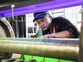 隨著市場(chǎng)對(duì)熱鍍鋅產(chǎn)品品質(zhì)的要求越來(lái)越高,光整機(jī)的日常維護(hù)變得至關(guān)重要,在光整機(jī)工作中,不僅需要及時(shí)調(diào)整因震動(dòng)故障導(dǎo)致的問(wèn)題,光整機(jī)工作輥輥面的清洗也值得關(guān)注,因?yàn)楣庹麢C(jī)工作一段時(shí)間后,工作輥輥面易粘附鋅粒,會(huì)在帶鋼表面產(chǎn)生很明顯的輥印, 這會(huì)嚴(yán)重影響帶鋼的表面質(zhì)量, 故須及時(shí)對(duì)工作輥輥面進(jìn)行清潔,以消除輥面粘鋅。[查看詳情]