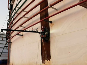 高效儲(chǔ)罐防腐除銹工藝——高壓水爬壁除銹機(jī)器人